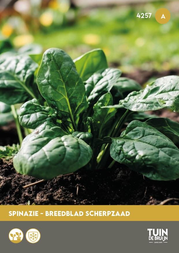 Een klassiek, snelgroeiend ras met brede, donkergroene bladeren en een zachte smaak. Deze spinazie is geschikt voor vroege teelt en herfstteelt, zowel in vollegrond als in potten. Zaaien vanaf februari tot april en opnieuw vanaf eind juli, direct buiten in rijtjes. Dun zaaien en regelmatig water geven voorkomt doorschieten. Oogst al na 4–6 weken. Heerlijk in salades, stamppot of kort gestoofd.