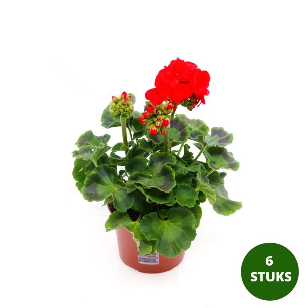 Staande geraniums - 6 stuks - rode tinten - Pelargonium zonale